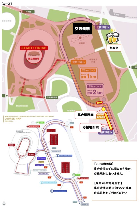 35km競歩のスタート時間変更に伴い、集合時間が30分早まりました。